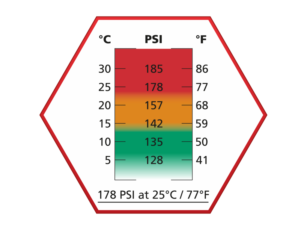Δεν συνιστάται η χρήση αυτού του αερίου σε πιστόλι με πλαστικό κλείστρο, καθώς η πίεση σε θερμοκρασία δωματίου είναι υψηλότερη από αυτήν για την οποία έχουν σχεδιαστεί. Για να σας βοηθήσει να πάρετε μια πιο τεκμηριωμένη απόφαση σχετικά με τον τύπο του αερίου ισχύος που χρειάζεστε για το όπλο σας, το προϊόν αυτό έχει επίσης δοκιμαστεί στους 5° C, 10° C, 15° C, 20° C και 30° C, όπως επισημαίνεται από τον εύχρηστο πίνακα εύρους θερμοκρασίας-πίεσης στην πίσω πλευρά της φιάλης.