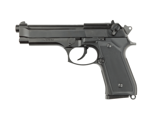 Πιστόλι Airsoft αερίου σε έκδοση του κλασικού Μ9 με μεταλλικό κλείστρο, πολύ ρεαλιστική αίσθηση στην αφή και την λειτουργία. Λειτουργεί με προωθητικό αέριο που είναι αποθηκευμένο στην γεμιστήρα του. Σε κάθε βολή το κλείστρο επαναοπλίζει αυτόματα και αυτό δίνει εξαιρετική αίσθηση ρεαλισμού. Το Hup Up είναι ρυθμιζόμενο, η γεμιστήρα του δέχεται έως και 25 BB’s σε διπλή στοίβα. Σημειώστε ότι για αυτό το μοντέλο υπάρχει και γεμιστήρα CO2 με κωδικό 16863