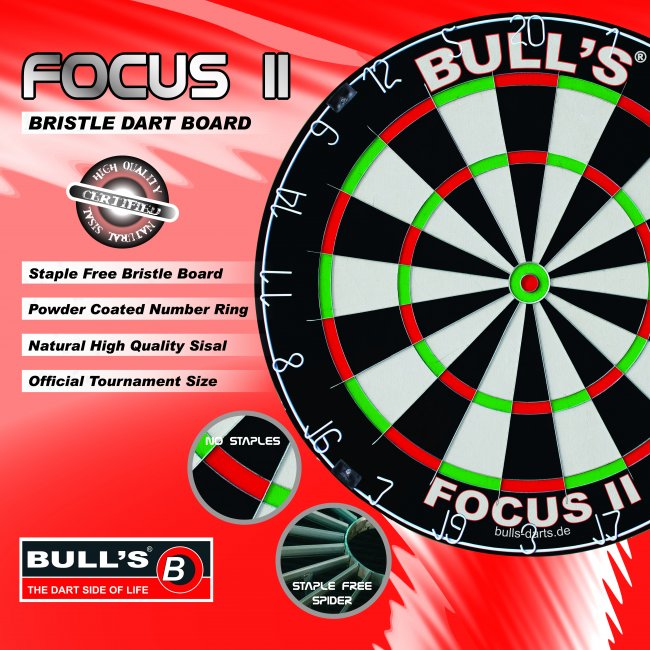 ΣΤΟΧΟΣ DART BULL’s Focus II Bristle Board Διαμετρος:45,5 cm– Το μεταλλικό του πλέγμα ΔΕΝ έχει ραφές!– Απο φυσικό υψηλής ποιότητας Sisal (ίνα από Μεξικάνικο κακτοειδές φυτό)– Μέγεθος διεθνών προδιαγραφών για αγώνες